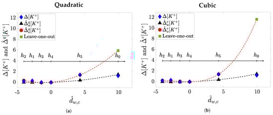 The quadratic models (f = q) are depicted in panel (a) while the cubic ones (f = c) are in panel