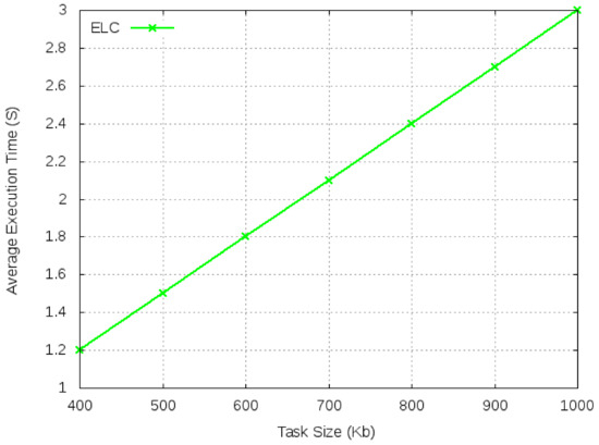 Average execution time for ELC with varied task size.