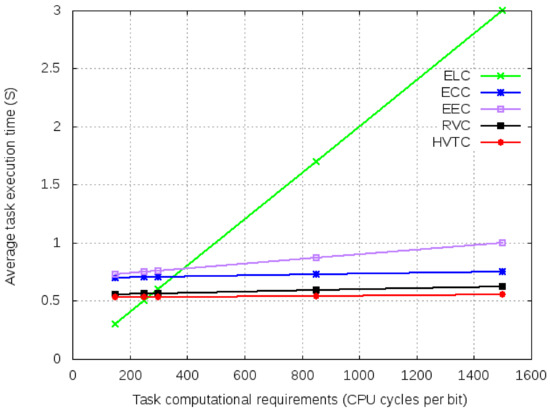 Average execution time for varied task computational requirements.