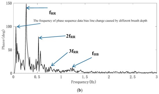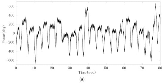 According to Formula (4), the phase modulation degree of IF signal output by mixing is proportional to the motion amplitude of the object [15]. By demodulating the phase, a signal proportional to the displacement of the chest can be directly obtained, which contains the breathing and heartbeat signals of the human body.