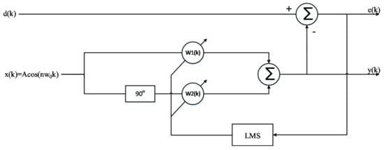 Single frequency adaptive notch filter based on the least mean square (LMS).