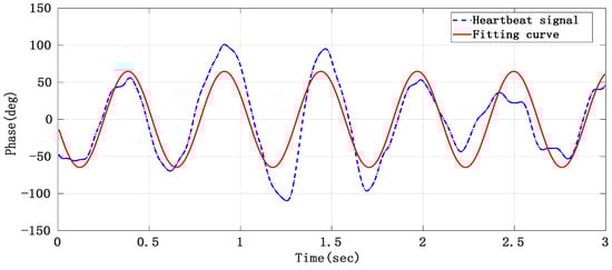 As the separated heartbeat signal has the problem of an unstable waveform, it is easy to make mistakes when directly searching the peak in the time domain. Therefore, the sinusoidal curve fitting method was adopted to reconstruct the heartbeat signal and thus improve the accuracy of the heart rate. The short-term heart rate can be worked out by conducting the sinusoidal curve fitting to the heart signal obtained after separation by taking every 3 s as a segment and finding the peak value of the fitting curve. The curve fitting results of the 3-s heartbeat signal are shown in Figure 16.