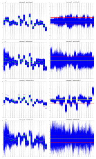 Structural health monitoring (SHM) allows identifying the states of structures to prevent damage that can occur because of operational and/or environmental conditions. It is possible to detect the beginning of a possible damage/failure in a structure and its components using methods associated with SHM systems [1]. Damage identification includes several levels including damage detection [2,3]. However, disturbances for robust damage identification need to be considered using algorithms for data-driven strategies [4]. Damage detection under changing environmental and operational conditions (EOC)—as in reality—is very complicated because the damage effects on the measured signals are masked by the EOC effects on the signals. The environmental conditions to which the structure is subjected has a stochastic nature; hence, the aim is to develop reliable methods for monitoring structures [5].