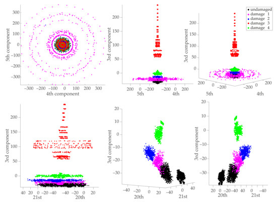 - Agis, D.; Tibaduiza, D.A.; Pozo, F. Vibration-based detection and classification of structural changes using principal component analysis and t-distributed stochastic neighbor embedding. Struct. Control. Health Monit. 2020, 27, e2533. [Google Scholar] [CrossRef]