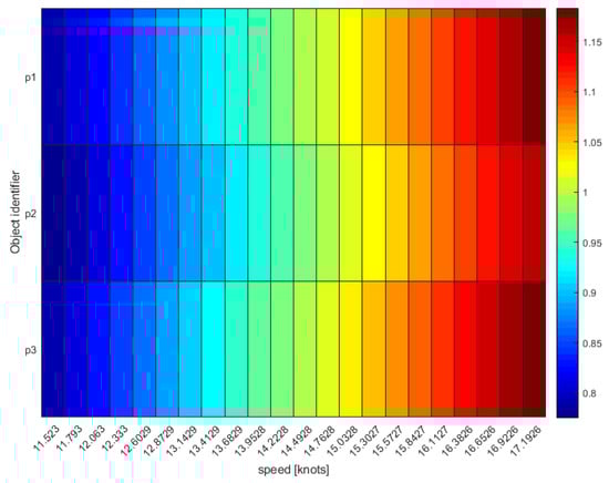 Five AIS pings were not correlated with detections (Case #4) since there were no SAR targets that fell in their buffer areas. Visual checking confirmed that they were below the limit of detectability of the Sentinel-1 image for SUMO: even if some of them showed a very weak signature, it was always at the level of the clutter. Twenty-one SAR targets fell in Case #1 and were correctly point-to-point matched with corresponding AIS pings, while for the 8 point-to-line associations (Case #2) only assumptions could be made on the accuracy of the results as AIS was actually off. One of these blackout lines was later labeled as “other” and clearly traced by a platform supply vessel that was thus non-violating the managed 500 m safety area. This was also confirmed by the analysis of the heat map (Figure 10), which indicated only values higher than 11 knots as possible speeds to cover the blackout distance in the considered time. This speed values are too high to be related to fishing activities, which are performed at 6/8 knots maximum (by “rapido” trawlers). Nevertheless, the proposed hypothetical route analysis proved useful to investigate unreported positions/blackouts that could hinder suspicious behaviors in proximity of regulated areas.