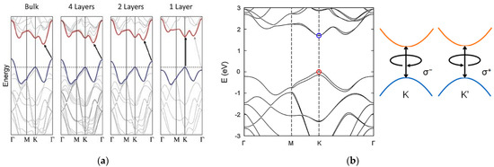 - Cheiwchanchamnangij, T.; Lambrecht, W.R.L. Quasiparticle band structure calculation of monolayer, bilayer, and bulk MoS2. Phys. Rev. B Condens. Matter Mater. Phys. 2012, 85. [Google Scholar] [CrossRef]
