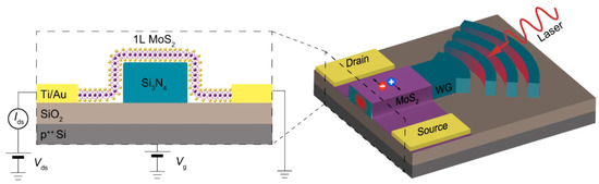 - Gonzalez Marin, J.F.; Unuchek, D.; Watanabe, K.; Taniguchi, T.; Kis, A. MoS2 photodetectors integrated with photonic circuits. NPJ 2D Mater. Appl. 2019, 3. [Google Scholar] [CrossRef]