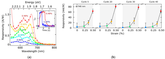 - Gant, P.; Huang, P.; de Lara, D.P.; Guo, D.; Frisenda, R.; Castellanos-Gomez, A. A strain tunable single-layer MoS2 photodetector. Mater. Today 2019, 27, 8–13. [Google Scholar] [CrossRef]