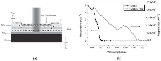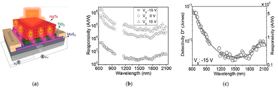 - Huo, N.; Gupta, S.; Konstantatos, G. MoS2–HgTe Quantum Dot Hybrid Photodetectors beyond 2 µm. Adv. Mater. 2017, 29, 1606576. [Google Scholar] [CrossRef] [PubMed]
