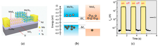 - Chen, Y.; Wang, X.; Wu, G.; Wang, Z.; Fang, H.; Lin, T.; Sun, S.; Shen, H.; Hu, W.; Wang, J.; et al. High-Performance Photovoltaic Detector Based on MoTe2/MoS2 Van der Waals Heterostructure. Small 2018, 14, 1703293. [Google Scholar] [CrossRef] [PubMed]