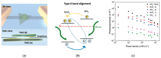 - Yu, W.J.; Liu, Y.; Zhou, H.; Yin, A.; Li, Z.; Huang, Y.; Duan, X. Highly efficient gate-tunable photocurrent generation in vertical heterostructures of layered materials. Nat. Nanotechnol. 2013, 8, 952–958. [Google Scholar] [CrossRef]