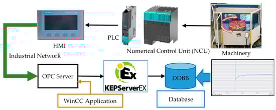 Supervisory control and data acquisition (SCADA) systems are the underlying monitoring and control strategy components of CPPSs [10]. The SCADA system supervises a plant or process through a master terminal unit (MTU) with one or more remote terminal units (RTUs). Through the human–machine interface (HMI), users obtain information in real time that allows them to improve decision-making procedures. The SCADA systems’ increasingly efficient connection with the Internet, as well as with corporate networks, allows for the management of a great amount of data [10].