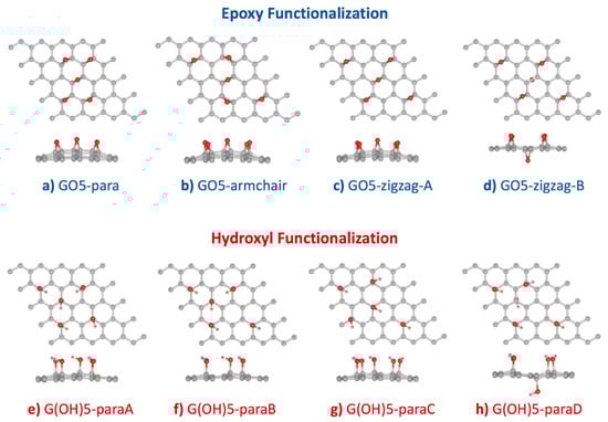 - Yan, J.-A.; Chou, M.Y. Oxidation Functional Groups on Graphene: Structural and Electronic Properties. Phys. Rev. B 2010, 82, 125403. [Google Scholar] [CrossRef]