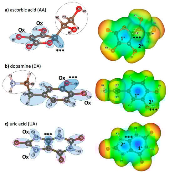 Prasert, K.; Sutthibutpong, T. Unveiling the Fundamental Mechanisms of Graphene Oxide Selectivity on the Ascorbic Acid, Dopamine, and Uric Acid by Density Functional Theory Calculations and Charge Population Analysis. Sensors 2021, 21, 2773. https://doi.org/10.3390/s21082773