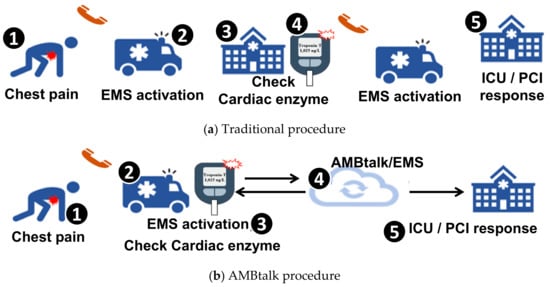 ACS or other heart emergency events require immediate medical care. Therefore, the rapid diagnosis of MI is a very important topic in the Emergency Medical Service (EMS) center. However, post myocardial-infarction care is accessible only at centralized specialist facilities, and not every hospital has such facilities. Therefore, early identification and triage is required so that the patient with chest pain can be quickly sent to a hospital with acute myocardial-infarction care facilities for treatment. Accurate early identification is a challenging task in the ambulance. Suppose that a patient with chest pain calls for Emergency Medical Service ((1) in