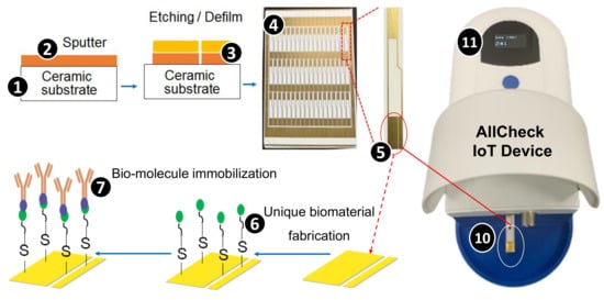 In the AllCheck® analysis method, the device uses EIS at fixed frequency with an amplitude of 10 mV to detect target analytes. The frequency is set in the range of 1–10 HZ, depending on the detection performance of different types of biosensor chips. The sensor collects nine impedance readings, which are averaged to obtain the final measured value.