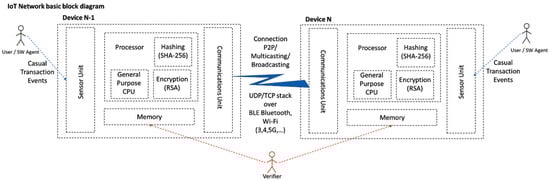 Elementary IoT device blockchain-capable configuration block diagram.