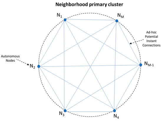 We define Neighborhood as a cluster of IoT devices, which fall into the communication range of each other. Even though in our experiment the devices were located in Wi-Fi range from each other, the intra-node communication takes place over TCP/IP, suggesting that any internet capable device can be part of the neighborhood irrespective of its geo-location.