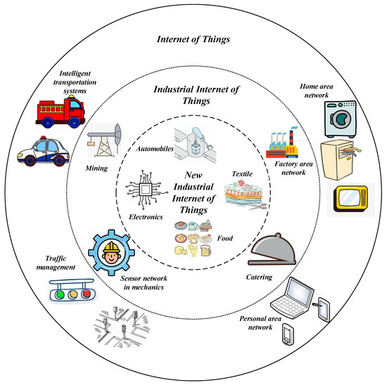 Cyber-physical systems (CPS) integrate computing components, networks, and physical processes into specific environments [1,2,3]. Many social systems can be abstracted as CPS. The CPS plays an irrreplaceable role in a broad range. For instance, the power grid system and vehicle network system are considered as the CPS [2,4,5,6,7]. Preserving the robustness of these social systems is essential. One typical CPS can be abstracted as cyber networks and physical networks. These networks are integrated and constructed as an interdependent network. An interdependent network that is built by several networks is more accessible than a single network [8,9,10]. As shown in Figure 1, the industrial internet of things is a part of the internet of things and many standard systems are in the range of the industrial internet of things. The industrial internet of things can also be abstracted as cyber networks integrate physical networks similar to CPSs. Computers are used to control and monitor physical networks. The physical networks can exchange data with other systems [11].