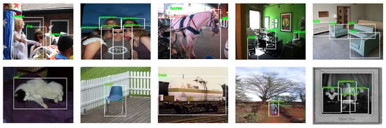 In the field of computer vision, PASCAL VOC is a set of standardized high-quality data sets, which are mainly used for tasks, such as object recognition, image segmentation, and object detection. PASCAL VOC marked a total of 20 categories of objects, namely: people, birds, cats, dogs, cattle, sheep, horses, chairs, bottles, potted plants, dining tables, TVs, sofas, bicycles, airplanes, buses, boats, cars, trains, and motorcycles. Figure 2 shows a typical example of the PASCAL VOC2007 data set. It contains 9963 images and a total of 24,640 labeled objects. It is composed of three parts, namely ghd train/val/test. The PASCAL VOC2012 data set is an upgraded version of PASCAL VOC2007. Figure 3 shows a typical example. The training set has 11,540 images and a total of 27,450 labeled objects. This paper uses the train/val parts of VOC2007 and VOC2012 as the training set, and the test part of VOC2007 as the test set to verify the proposed algorithm.