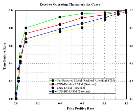 Comparative analysis of the proposed model with CNN-LSTM and CNN-BD-LSTM using ROC and AUC curves.