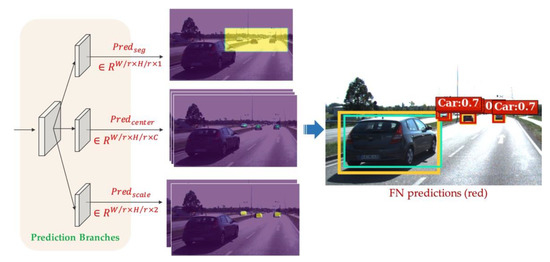 The design of prediction branches and their outputs depend on how we want to describe the predicted FN objects. As mentioned in Section 3, we want the prediction branches to provide the category label , the center position , and the height and width of each FN object.