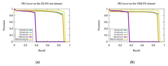 The Precision-Recall (PR) Curves on the 2D-FN test dataset and the TRK-FN dataset are shown in Figure 8.