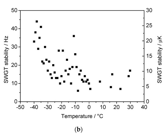 - Rabi, G.J.D.; Wang, T. Progress on 10 Kelvin cryo-cooled sapphire oscillator. In Proceedings of the 2004 IEEE International Frequency Control Symposium and Exposition, Montréal, QC, Canada, 23–27 August 2004; pp. 752–756. [Google Scholar] [CrossRef]