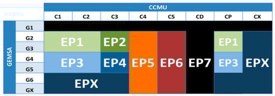 There are several solutions found in the literature that have attempted to address issues in current ED triage systems. For example, the authors in [8] tried to improve the French ED triage system. They proposed a new classification method for ED patients called EP which combines categories defined by the two classification methods used in the French triage system, namely CCMU and GEMSA. They also designed a time-series forecasting model to predict the daily number of ED visits. The EP classification method was based on statistical tests that were performed on patient data collected from the Troy Hospital ED during the period from 2010 to 2014 along with the experience of the staff using CCMU and GEMSA classifications. As shown in Figure 2, the EP classification method consists of eight categories created by grouping multiple categories defined by CCMU and GEMSA. The performance of their forecasting model was 91.08% for long-term predictions and 91.84% for short-term predictions. However, while the study aimed to predict the daily number of ED patients to help in managing the required resources, it did not address the treatment priority of patients or estimated waiting times.