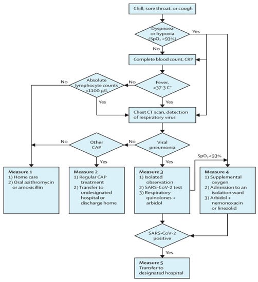- Zhang, J.; Zhou, L.; Yang, Y.; Peng, W.; Wang, W.; Chen, X. Therapeutic and triage strategies for 2019 novel coronavirus disease in fever clinics. Lancet Respir. Med. 2020, 8, e11–e12. [Google Scholar] [CrossRef]
