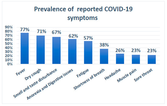 The authors in [69] studied the changes in smelling and tasting in COVID-19 confirmed cases. The main problem with their study’s validity was a lack of enough samples to cover the factors that were studied, such as the geographical distribution of the samples and the disease’s subsequent course. However, their report covered the majority of the main symptoms that can be used to help select symptoms for COVID-19 diagnosis, as well as other studies. They primarily reported the prevalence of some of the COVID-19 symptoms listed in Table 3. In terms of symptom frequency, we listed the percentage found in this study as well as other frequencies discussed in other studies [70,71,72,73,74,75,76].
