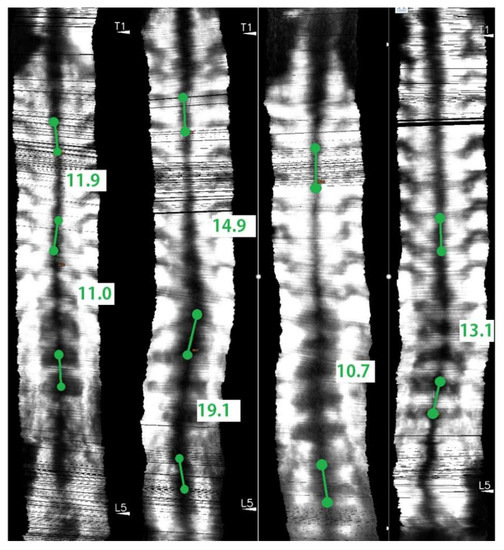 - Humphries, T.; Baker, M.; Breakwell, L.L.; Cole, A.; Hughes-Lawson, C.; Naylor, B.; Michael, A. Correlation of rotation parameters in scoliosis between radiographs and DIERS Formetric Scans. Bone Joint J. 2014, 96B, 15–18. [Google Scholar]
