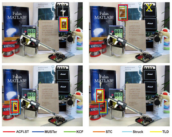 - Hong, Z.; Chen, Z.; Wang, C.; Mei, X.; Prokhorov, D.; Tao, D. Multi-store tracker (MUSTer): A cognitive psychology inspired approach to object tracking. In Proceedings of the IEEE Conference on Computer Vision and Pattern Recognition (CVPR), Boston, MA, USA, 8–10 June 2015. [Google Scholar]