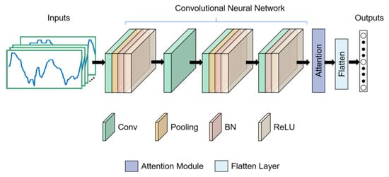The architecture of our proposed gait recognition method is shown in Figure 2. The model includes a four-layer lightweight CNN and an attention module. The CNN was used to extract gait features at the forefront of the entire network. The attention module based on contextual encoding layer [11] and depthwise separable convolution [12] are used to enhance the gait features related to the identity category and reduce the model parameters. Finally, the enhanced features are flattened into a one-dimensional vector and fed to the Softmax classifier for identify recognition.