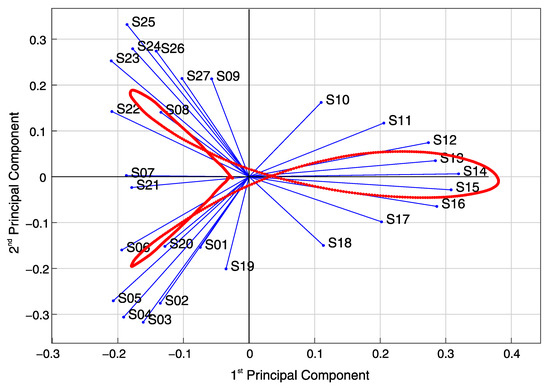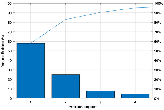 The principal components have no physical meaning, but they describe the directions that explain a maximal amount of variance, i.e., the axes that provide the best angle to see and evaluate the data. The first principal component is composed of the axes’ directions that capture each variable’s largest possible variance. The second principal component is another set of axes perpendicular to the first and accounts for the next highest variance. This process continues until the number of calculated principal components equals the number of variables in the original data. The full set of principal components is a square matrix of order n, where n is the number of variables. However, it is commonplace that the first few principal components explain over 80% of the total variance. Therefore, they can be used to understand the driving forces that generated the original data [64].