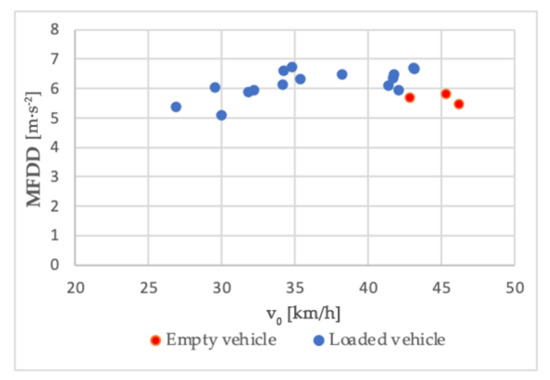 - dm—mean fully developed deceleration (MFDD), which was calculated as follows [67,68]: