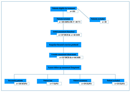 - Reijneveld, E.; Noten, S.; Michener, L.; Cools, A.; Struyf, F. Clinical outcomes of scapular-focused treatment in patients with subacromial pain syndrome: Systematic review. Br. J. Sports Med. 2017, 51, 436–441. [Google Scholar] [CrossRef] [PubMed]