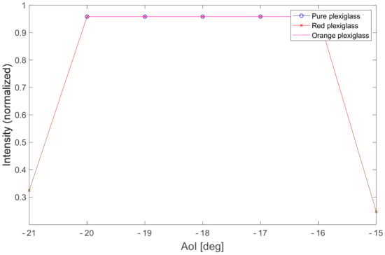 | Red transparent plastic | [−21°, −15°] | [−20°, −16°] |