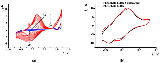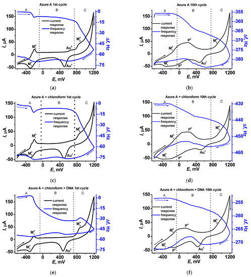 3.2. Electropolymerization of Azure A in the Buffer Saturated with Chloroform
