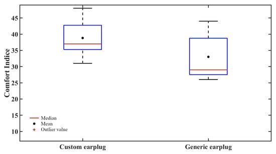 Comfort indices for the custom instrumented earplug and generic instrumented earplug used in this study show similar comfort rankings.