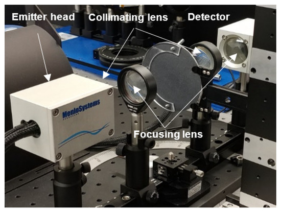 To minimize the influence of scattering from the test surface in the retrieval method, we worked with a focused beam configuration using TPX planoconcave lenses [38] as shown in Figure 4. In such a configuration, the diffuse scattering, within ±10 deg. approximately [39,40], was collected owing to the relay lens in the detection side and contributed to the retrieval method.