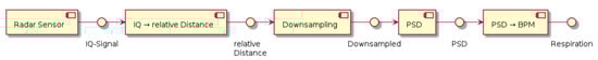 This section describes the developed signal processing software to determine the respiratory rate using a ToF camera and a radar sensor. The time synchronization with the gold standard reference is described.