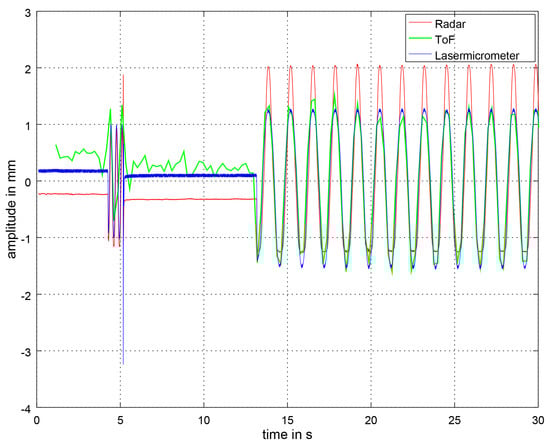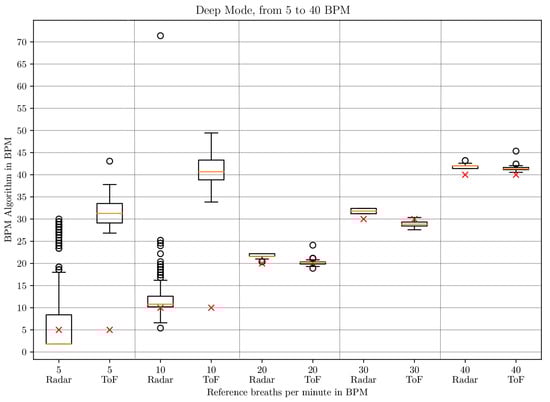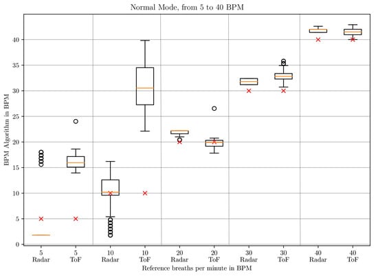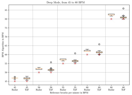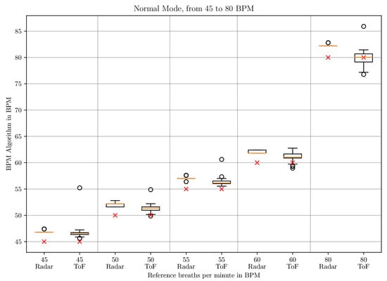 To sum up, we found that ToF cameras and microwave interferometric radar sensors based on CW show many advantages. ToF cameras do not require markers and are independent of lighting conditions. Microwave interferometric radar sensors can use the ISM frequency band and are also capable of measuring the heartbeat [44,45], which we want to do in the future. The radar sensor has the drawback that it is sensitive to motion artifacts due to, e.g., the baby moving its arms. If this movement has a similar frequency to the frequency of the thorax movement resulting from respiration, it can lead to issues. There are approaches for example by Tang et al. using a self- and mutually injection-locked (SMIL) radar system which allows random body movement cancellation, but this was only tested on adults [46]. Using SMIL radar requires a completely different hardware setup. As ToF cameras deliver 3D point clouds which allow tracking of the baby’s movement, the combination of a microwave interferometric radar sensor and a ToF camera could help to eliminate those motion artifacts. Furthermore, there is no system so far which combines and evaluates the data of a ToF camera and a microwave interferometric radar sensor synchronously for determining the respiratory rate and which has been tested on neonates.