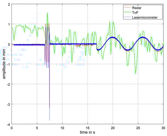 To allow our neonatal simulator to be used as gold standard, a precise reference measurement has to be included. This reference sensor needs to be capable of detecting small movements within the submillimeter range so that thorax movements due to the heartbeat can also be detected. An excellent choice is a laser micrometer which uses the principle of shadowing [59,60]. Whenever an object penetrates the light carpet, the change can be detected. The laser micrometer is ideal for our test setup but cannot be used as a measurement device within the incubator on the NICU as it has a laser class 1 M, which means that the laser becomes dangerous if optical instruments magnify the laser. In addition, the baby would have to lie on the metal bar connecting the receiver and transmitter of the laser micrometer, which would be uncomfortable. Furthermore, erroneous measurements would occur if the baby sleeps on its side. For our neonatal simulator under ideal conditions, these points are negligible.