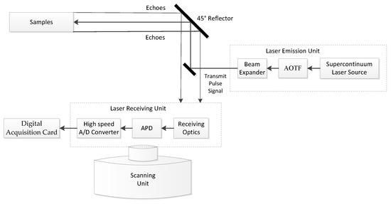 The HSL System [20,24] consists of three units, including a laser emission unit, a full-waveform signal receiving unit, and a scanning control unit. Figure 1 presents the design of the HSL System.