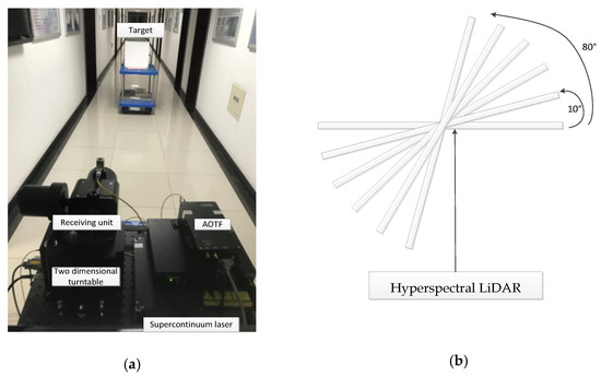 - Hu, P.; Huang, H.; Chen, Y.; Qi, J.; Li, W.; Jiang, C.; Wu, H.; Tian, W.; Hyyppä, J. Analyzing the Angle Effect of Leaf Reflectance Measured by Indoor Hyperspectral Light Detection and Ranging (LiDAR). Remote Sens. 2020, 12, 919. [Google Scholar] [CrossRef]