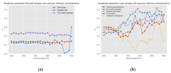 The relationship between roughness parameter, m, and wavelength, . (a) Non-leaf samples; (b) Leaf samples.