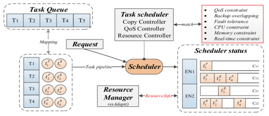 - For latency-sensitive tasks, we propose a dynamic QoS-aware fault-tolerant task scheduling mechanism, which extends the traditional PB model by introducing different reliability requirements for tasks; i.e., when scheduling task copies, their QoS levels are dynamically adjusted according to their reliability requirements and latency constraints.