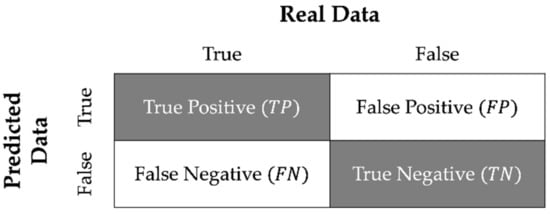 The performance of deep-learning models was measured based on the indices of the confusion matrix []. As Figure 6 shows, there are four indices when comparing real labels and predicted labels in binary classification: true positive (TP), true negative (TN), false positive (FP), and false-negative (FN). Table 1 presents the performance metrics and their equations for authentication models used in the present study, including accuracy, recall, precision, F1 score, false acceptance rate (FAR), false rejection rate (FRR), and equal error rate (EER).