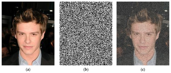Sample of degraded image. (a) presents an original image , (b) demonstrates the AWGN image , and (c) shows the resultant image .